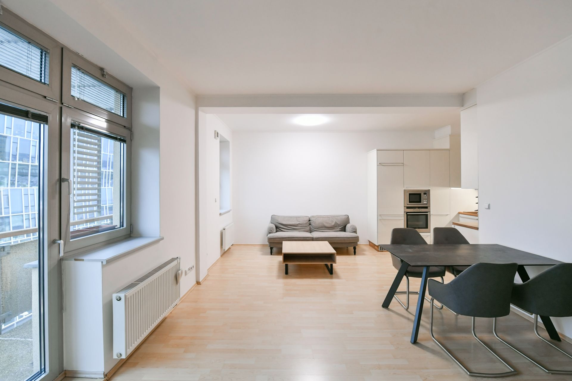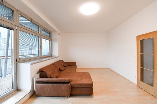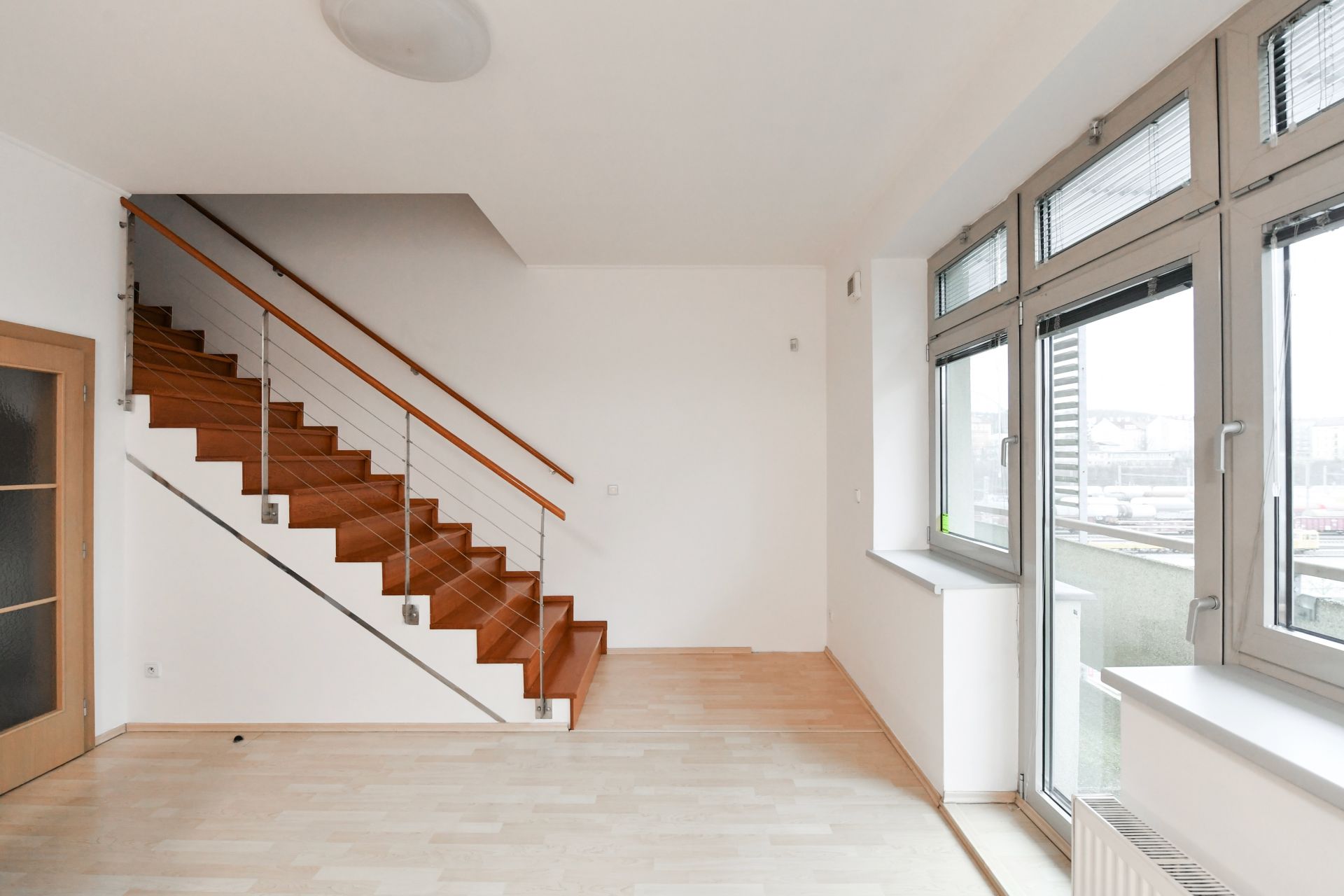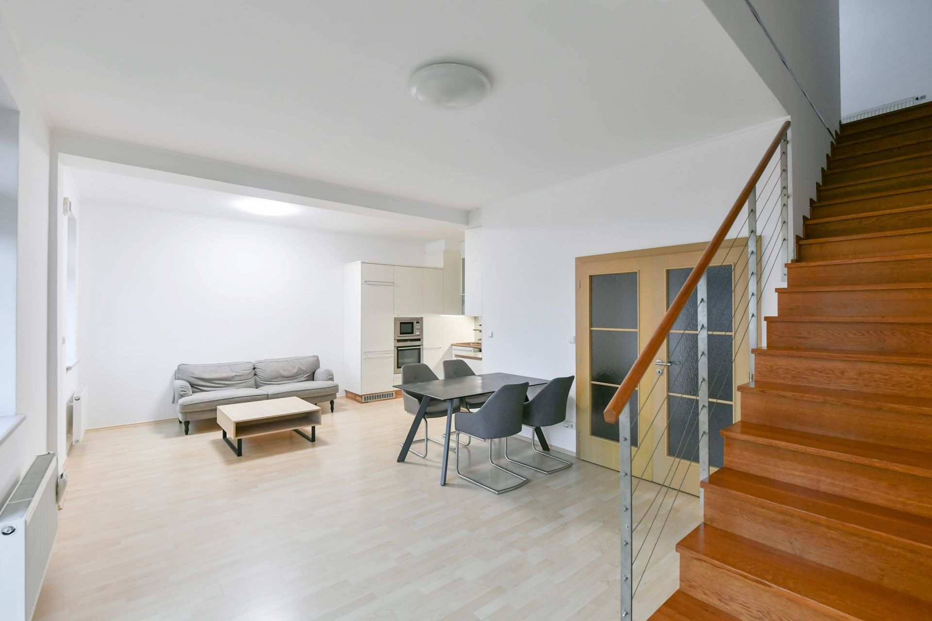 Ve výhradním zastoupení majitele nabízíme k pronájmu mezonetový byt o dispozici 4+kk s dvěma balkony a garážovým stáním. Byt se nachází v posledních dvou patrech (5. a 6.patro) bytového domu. Prostorné garážové stání lze pronajmout za 2.000,-Kč/měsíčně. Byt se nachází kousek od metra B – Českomoravská.